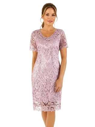 Suknia wieczorowa, pudrowa kreacja z rozcięciem 20665.