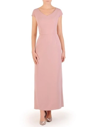 Pudrowa suknia z efektownym rozcięciem, nowoczesna kreacja wieczorowa 30165