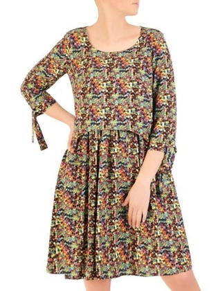 Sukienka z wzorzystą wstawką Gerda, wyszczuplająca kreacja na jesień