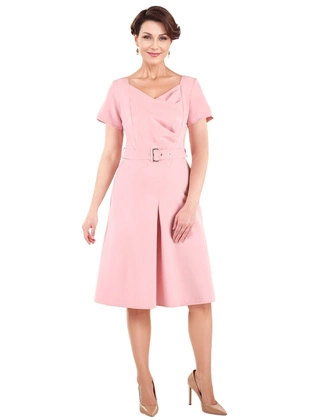 Pudrowa kreacja w rozkloszowanym fasonie 20012.