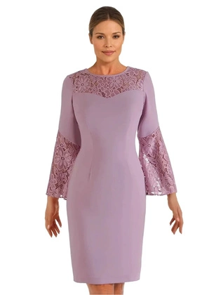 Liliowa sukienka z szerokimi, koronkowymi rękawami 20009