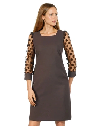 Oryginalna sukienka damska z szyfonowymi rękawami i ozdobnym dekoltem 34031