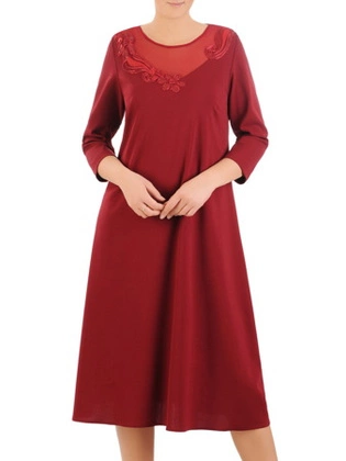 Trapezowa sukienka z dzianiny, kreacja z ozdobnym karczkiem 31247