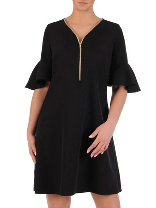 Luźna sukienka z ozdobnym suwakiem, trapezowa kreacja wizytowa 19745
