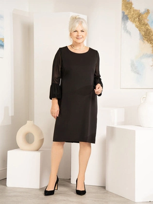 Klasyczna mała czarna z oryginalnym wykończeniem rękawa 34072