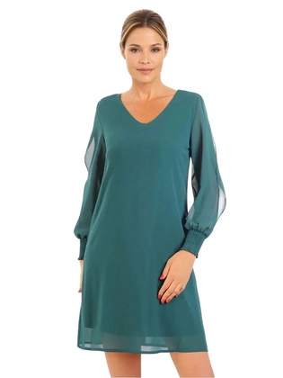 Dwurzędowa sukienka z tiulowymi rękawami 17914.