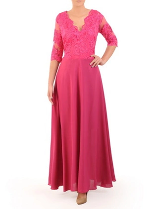 Długa sukienka z koronkowym topem, kreacja z modnym dekoltem 22924