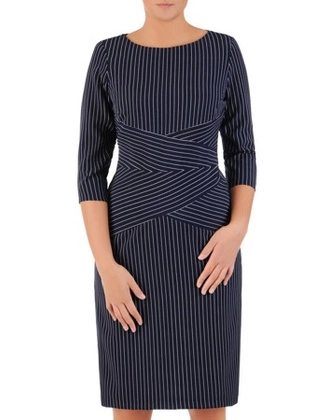 Modna sukienka w paski, wyszczuplająca kreacja na sezon jesienny 21816