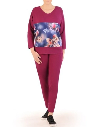 Fioletowy komplet dresowy w kwiatowy wzór 29688