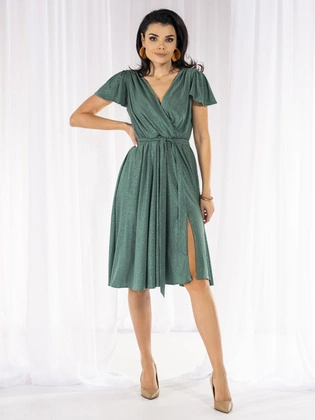 Sukienka na wesele, rozkloszowana kreacja z kopertowym dekoltem 38088