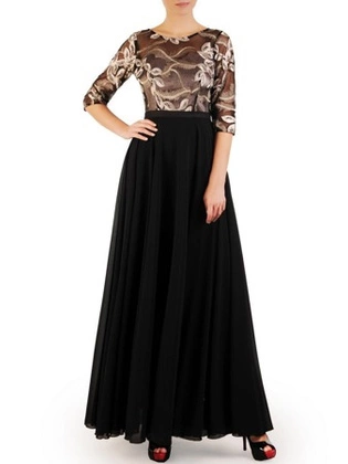 Suknia z dekoracyjnym topem, rozkloszowana kreacja wieczorowa 23733
