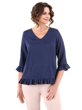 Wiosenna bluzka damska – elegancka granatowa bluzka z falbanami 39777