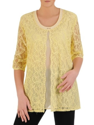 Żółta sukienka z modnie wykończonym dekoltem 17289.