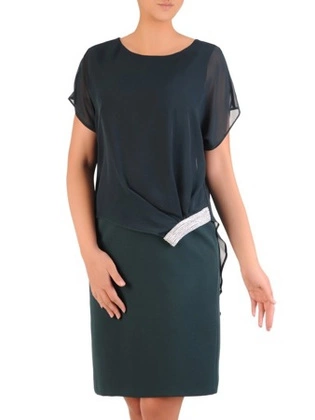 Chabrowa sukienka z ozdobną narzutką i połyskującą aplikacją 37142