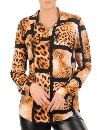 Beżowa koszula z długim rękawem i kołnierzykiem 34732