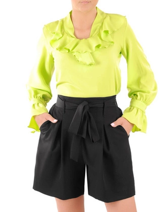 Musztardowa bluzka z ozdobnym wycięciem przy dekolcie 33366