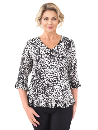 Tunika damska plus size z dzianiny – modna bluzka wizytowa z dekoltem w serek 40821