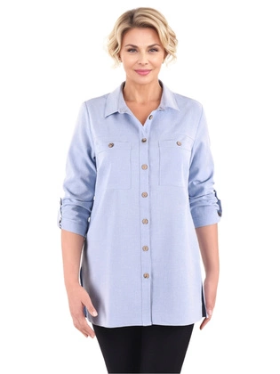 Koszula damska, błękitna lniana koszula z podwijanymi rękawami 40102