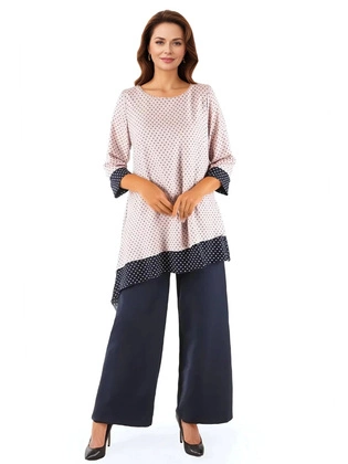 Komplet damski elegancki, asymetryczna tunika w groszki z luźnymi spodniami 38250