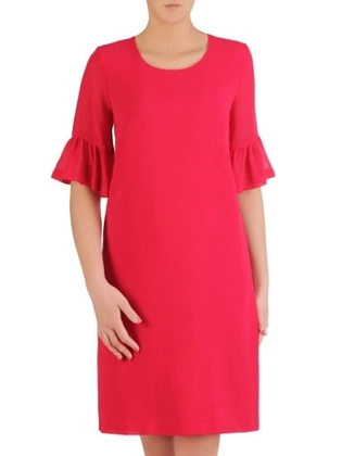 Sukienka damska, prosta kreacja z ozdobnymi rękawami 27659