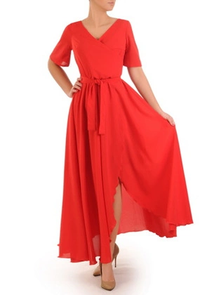 Szyfonowa sukienka o trapezowym kroju, kreacja z oryginalnym kopertowym dekoltem 24632