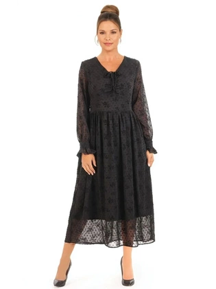 Koronkowa sukienka o trapezowym kroju, kreacja z falbanami 27386