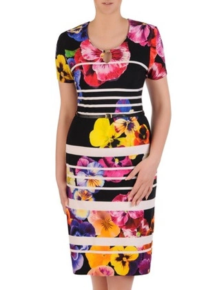 Rozkloszowana sukienka z kołnierzem, kreacja w kwiaty 34243