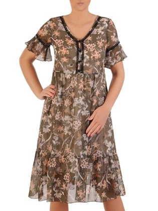 Szyfonowa sukienka z guzikami przy dekolcie, w oryginalnym wzorze 25201