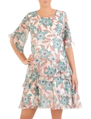 Sukienka z szyfonu, zwiewna kreacja w roślinny deseń 33750