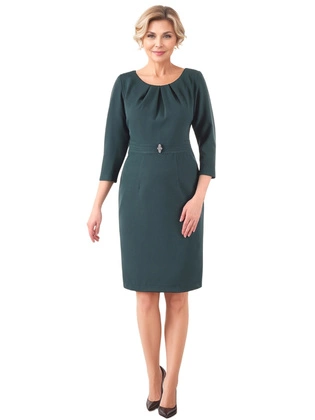 Sukienka damska midi, klasyczna, prosta kreacja w modnym odcieniu zieleni 12691