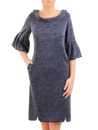Dzianinowa sukienka z ozdobnymi rękawami i golfem 30811