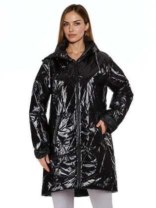 Kurtka damska pikowana, przejściowa kurtka z modnymi, dresowymi wstawkami i szeroką stójką, kaptur, duże rozmiary 31948