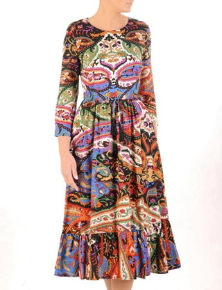 Modna sukienka midi, rozkloszowana kreacja z falbanami 28221