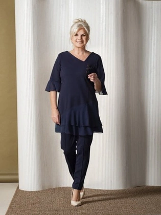 Szyfonowa granatowa tunika z falbanami 27282