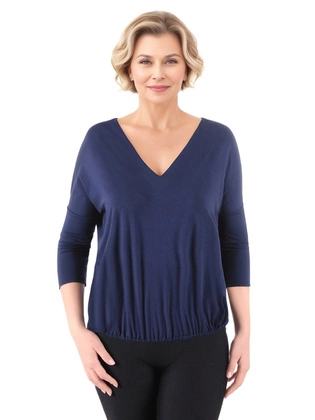 Granatowa bluzka z wiskozy z dekoltem w serek i rękawem kimono 39534