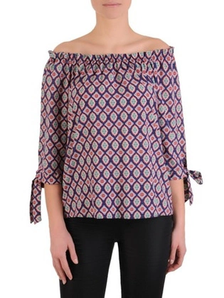 Wzorzysta bluzka z wiązaniem na biodrze Suzana.
