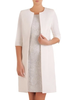 Wizytowy komplet damski, żakardowa sukienka z gładkim żakietem 26716