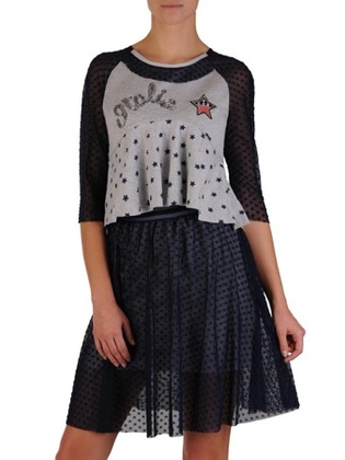 Granatowa garsonka damska z koronkową spódnicą 35603