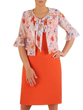 Kostium damski, pomarańczowa sukienka z delikatnym żakietem 26219