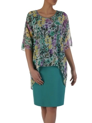 Elegancki komplet damski, kwiatowa sukienka z szyfonową bluzką 29909