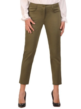 Spodnie damskie, oliwkowe, materiałowe spodnie w dopasowanym fasonie z kieszeniami 31494