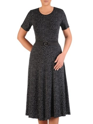 Sukienka w groszki, dzianinowa kreacja z paskiem 26098
