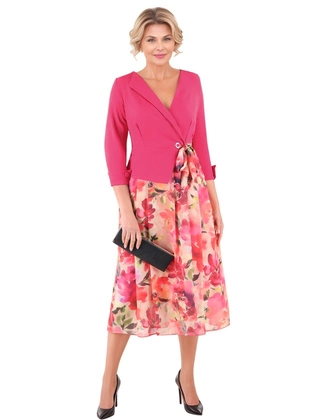 Elegancka sukienka w kwiaty z ozdobnie rozszerzanymi rękawami 33652