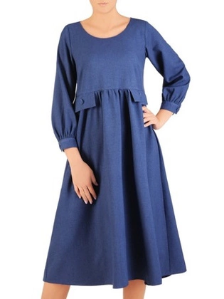 Rozkloszowana sukienka z lnu, kreacja z eleganckimi patkami 30466