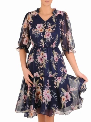 Sukienka damska w kwiaty, kreacja z szyfonu i tkaniny 29231