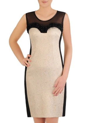 Złota sukienka z żakardu z ozdobnym dekoltem 29232