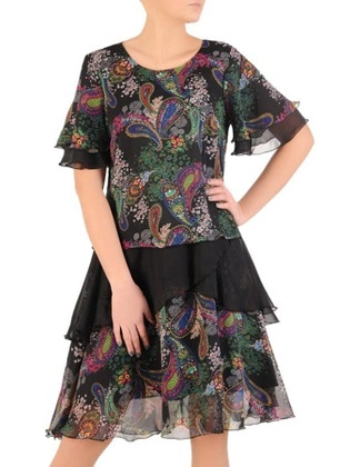 Wzorzysta sukienka mini z szyfonu, kreacja z modną stójką 31319