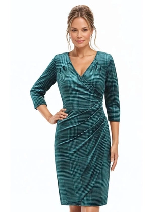 Kopertowa sukienka wyszczuplająca, kreacja z ozdobnymi marszczeniami 37119