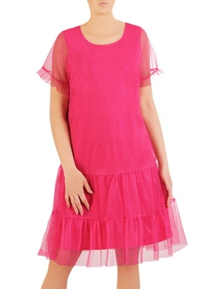 Tiulowa sukienka w groszki, kreacja w rozkloszowanym fasonie 23542