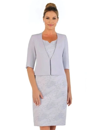 Kostium damski, żakardowa sukienka z gładkim żakietem 26234